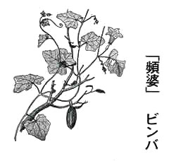葉はやや厚くて柔らかく、五角形か七角形で、白い小さな花をつける。果実は若いうちは白い縦縞があり熟すると真赤になり、カラスウリに似ている。 「唇色赤好にして頻婆果の如し…」(妙法蓮華経妙荘厳王本事品(みょうほんれんげきょうみょうしょうごんのうほんじほん)) 仏陀が持つ固有の特徴として、三十二相八十種好がいわれているが、この相好のうち仏陀の唇は、真(ま)っ赤(か)に熟した頻婆果に喩(たと)えられる。