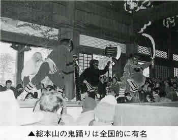 総本山本成寺も二月三日、節分追儺式が盛大に行われます。赤鬼・青鬼・黄鬼・緑鬼・黒鬼などが舞台上を所せましと暴れ回り、その鬼たちに参拝者が豆をまきます。寒さふきとばす熱気があり、とても賑かな節分です。ご本山に参詣し、一年の無事を願ってみてはいかがでしょうか。